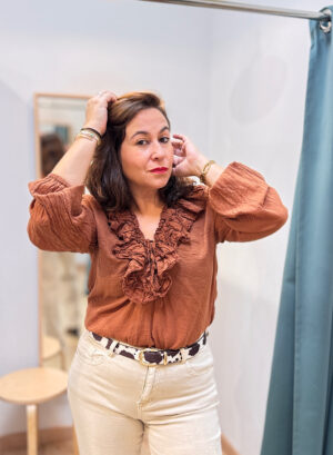 19,99€ IVA incluído Añadir al carritoDescubre la elegante CAMISA VOLANTE DELANTERO, una prenda sofisticada en tono terracota que realza tu estilo con su llamativo volante frontal y escote en pico. Ideal para un look distinguido y cómodo, esta camisa de manga larga con puños elásticos es perfecta para cualquier ocasión que requiera un toque chic.