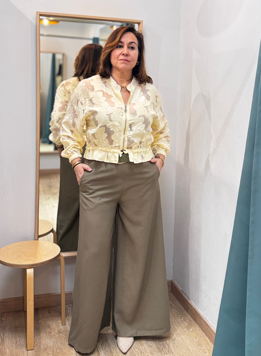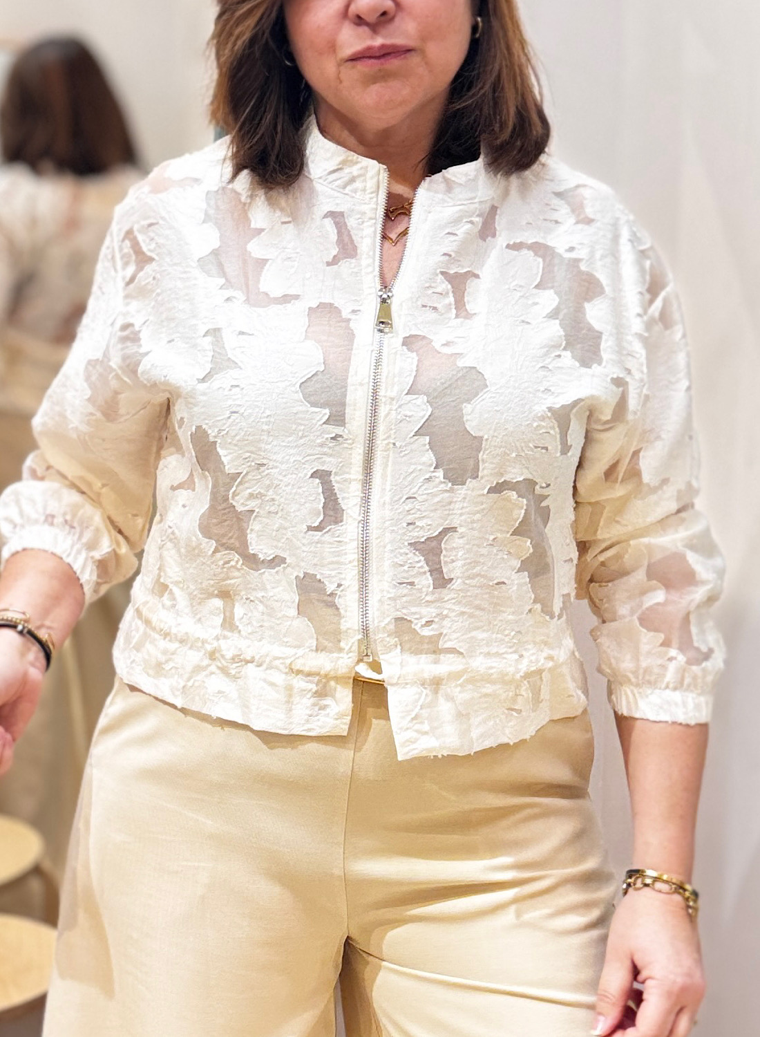 Eleva tus conjuntos con la exclusiva BOMBER ROSALÍA, una prenda que fusiona la comodidad casual con la sofisticación en cada detalle. Perfecta para el entretiempo, esta chaqueta ligera en un delicado tono crema o amarillo pálido se convierte en el centro de todas las miradas gracias a su textura y diseño único.