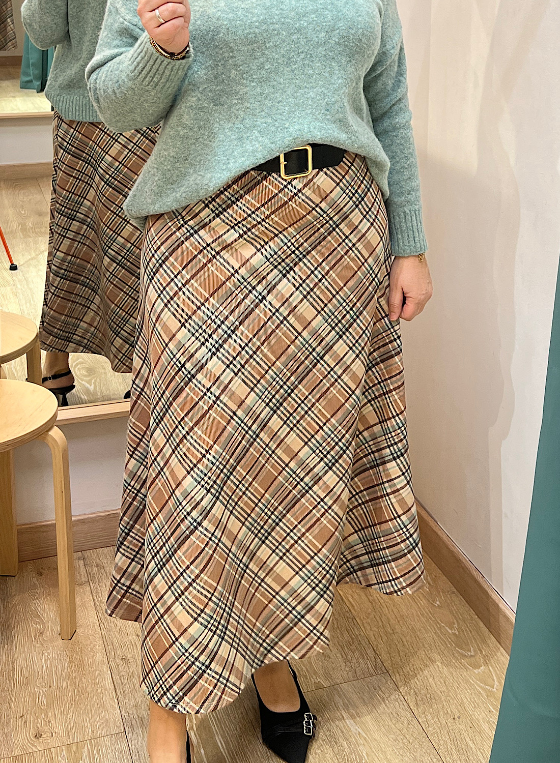 La sofisticación de la falda antelina cuadros en tu armario