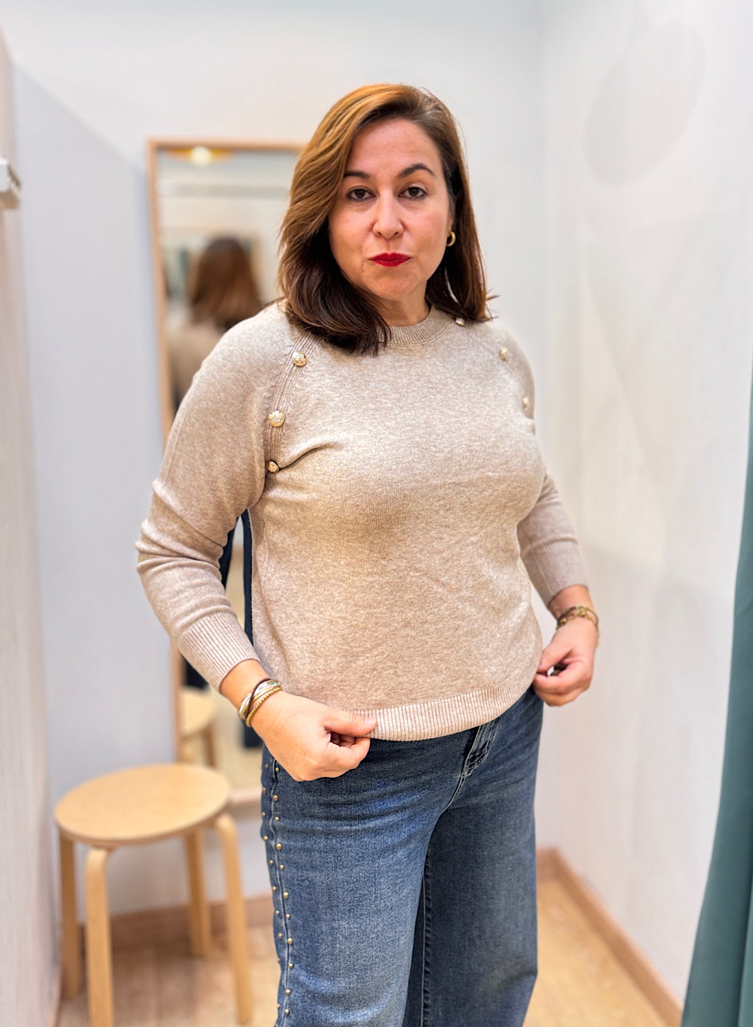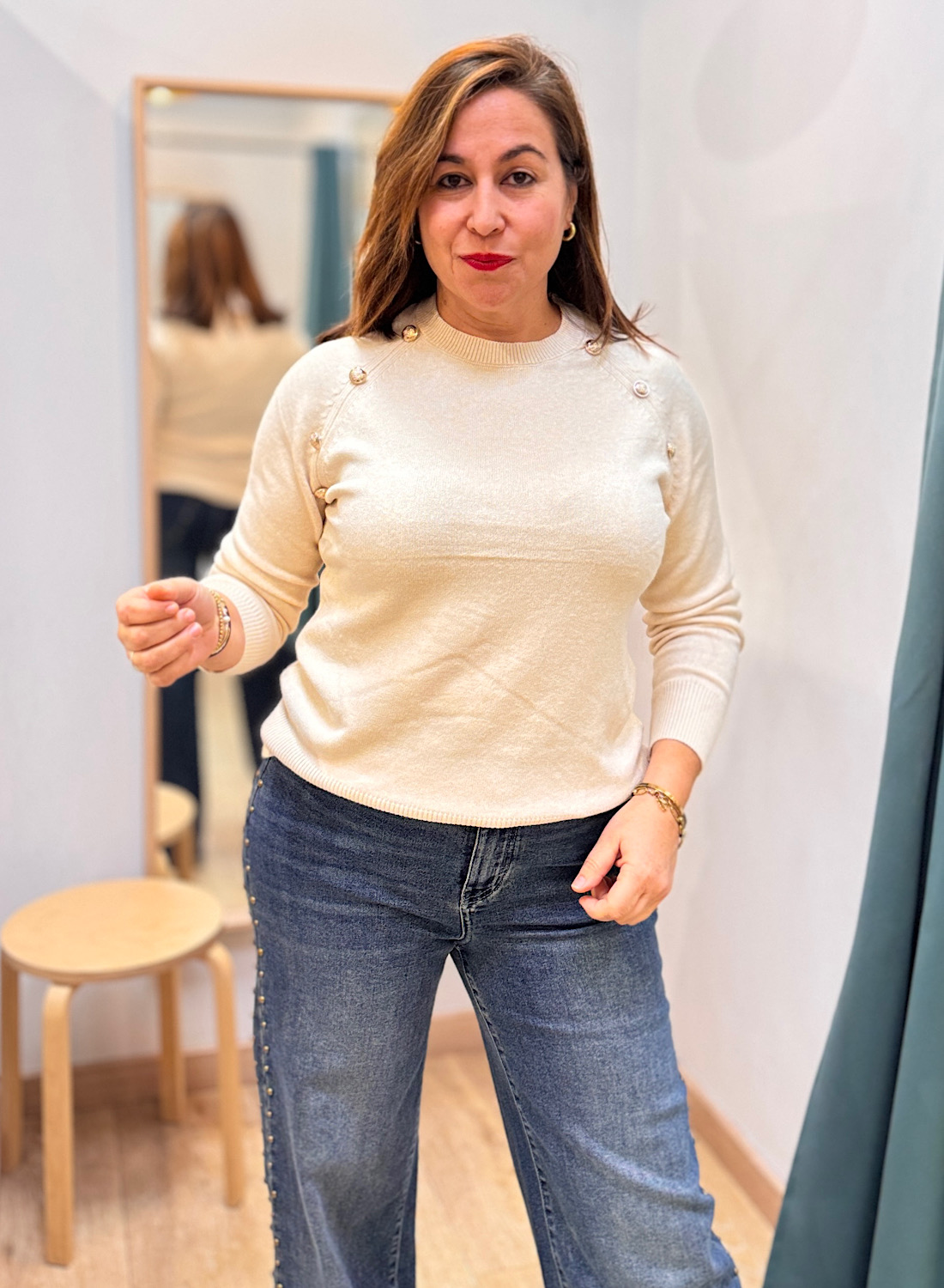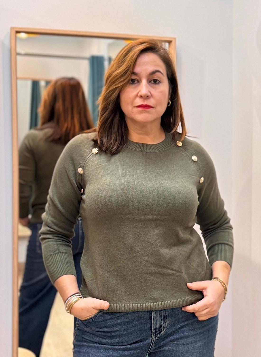 Añade una pieza clave a tu fondo de armario con el JERSEY PUNTO BOTONES DORADOS. Esta prenda redefine la comodidad y la elegancia, siendo perfecta para construir atuendos versátiles y sofisticados para cualquier ocasión. Su diseño atemporal lo convierte en un imprescindible que se adapta a múltiples estilos.