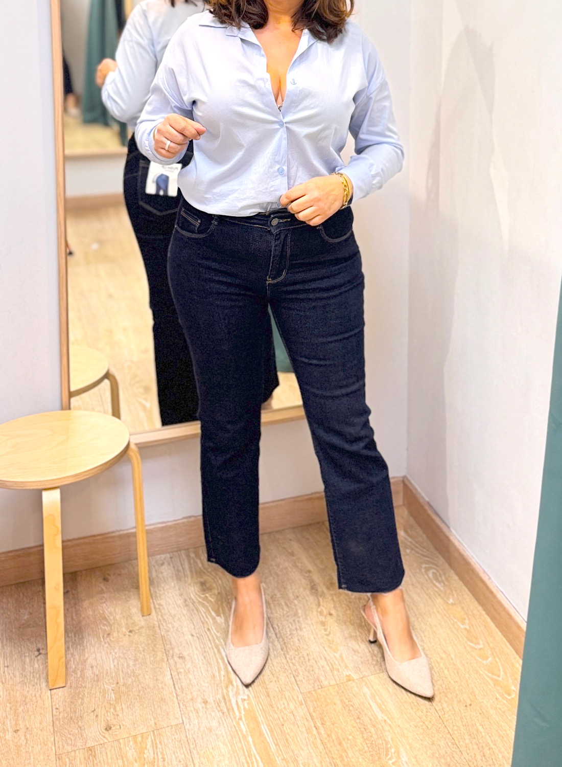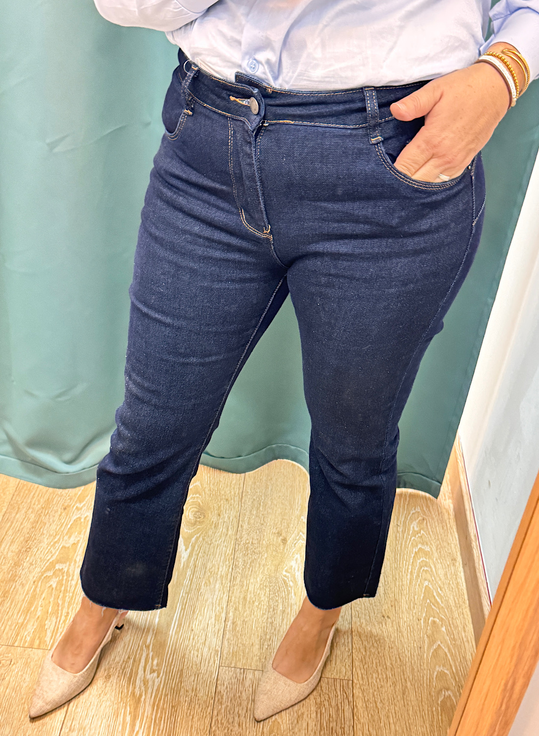 - Bajo cropped diseñado para realzar el calzado, ideal para botines y tacones.