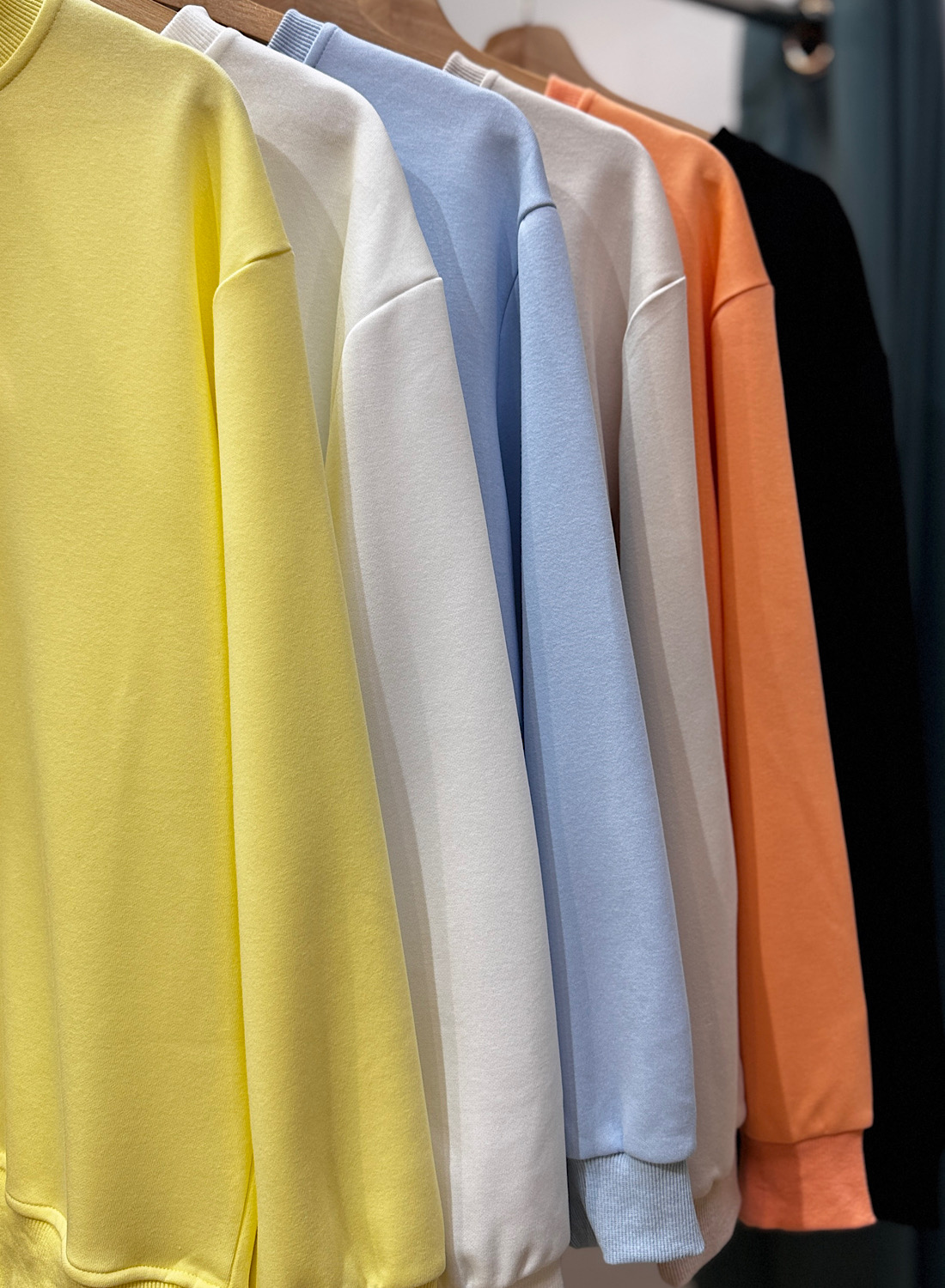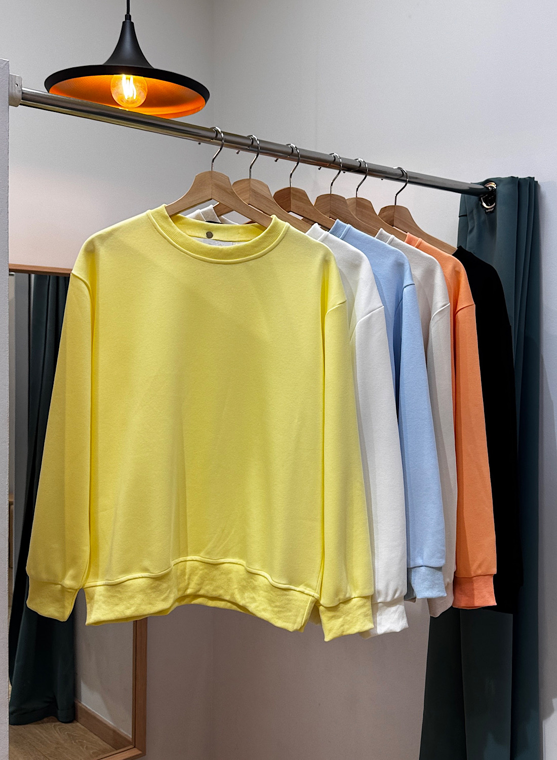 Esta sudadera presenta un diseño minimalista de corte recto y cuello redondo que favorece diversas siluetas. Sus mangas largas, al igual que su bajo, terminan en puños elásticos acanalados (rib) que garantizan un ajuste discreto y mantienen la forma de la prenda. Su estética lisa y limpia es el lienzo perfecto para crear infinidad de combinaciones. Disponible en una vibrante paleta de colores sólidos como el amarillo, blanco, azul cielo, naranja tierra y el clásico negro, ofreciéndote opciones para cada gusto y temporada.