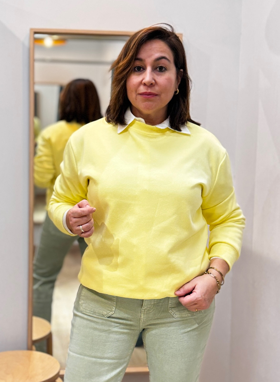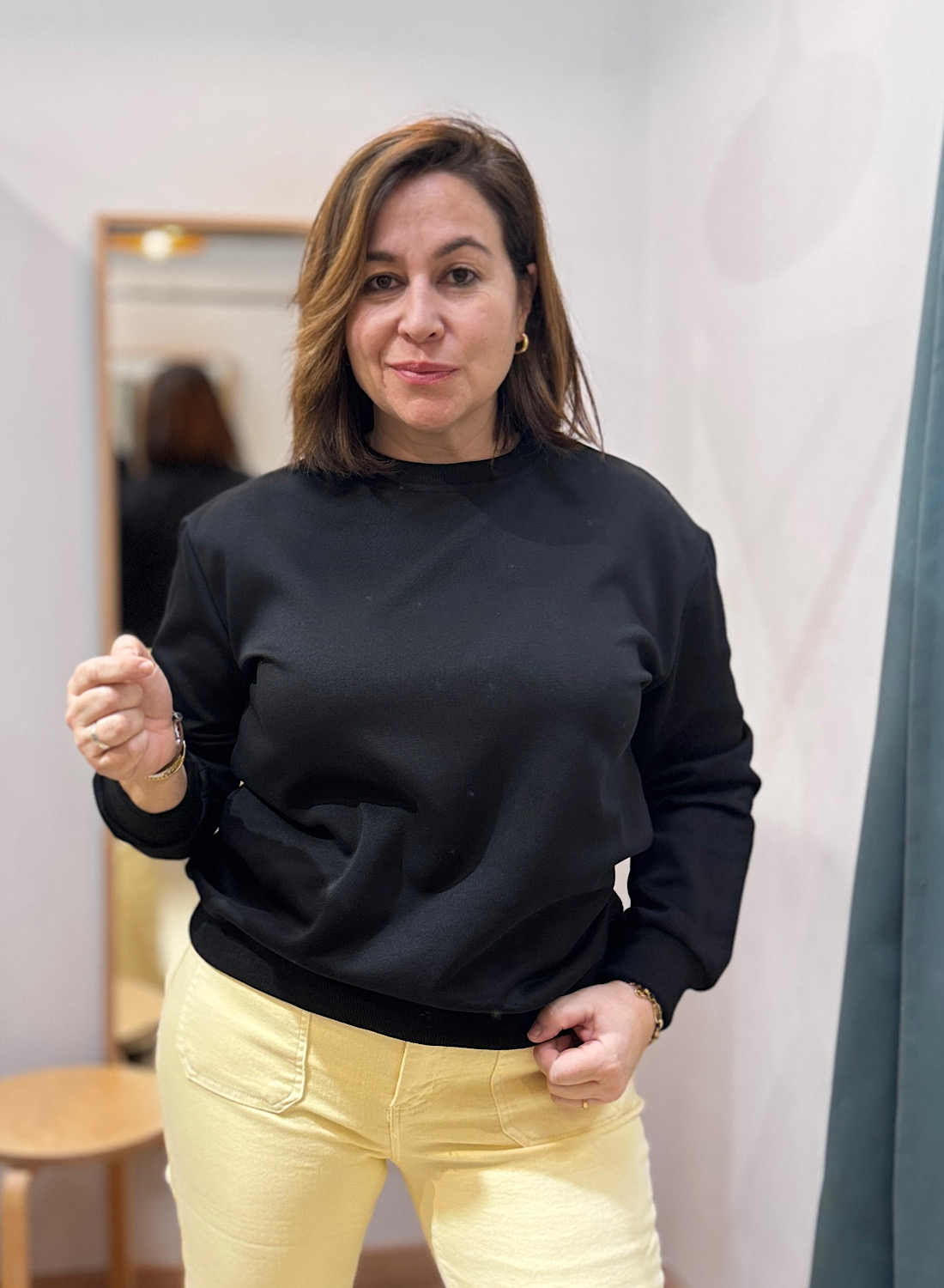 Esta sudadera presenta un diseño minimalista de corte recto y cuello redondo que favorece diversas siluetas. Sus mangas largas, al igual que su bajo, terminan en puños elásticos acanalados (rib) que garantizan un ajuste discreto y mantienen la forma de la prenda. Su estética lisa y limpia es el lienzo perfecto para crear infinidad de combinaciones. Disponible en una vibrante paleta de colores sólidos como el amarillo, blanco, azul cielo, naranja tierra y el clásico negro, ofreciéndote opciones para cada gusto y temporada.