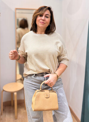 25,99€ IVA incluído Añadir al carritoDescubre el encanto compacto del BOLSO PETIT, ideal para tus esenciales diarios. Este elegante bolso bandolera combina una textura de rafia con detalles en tono liso, ofreciendo un estilo versátil y chic para llevar cómodamente al hombro o cruzado, perfecto para cualquier ocasión.